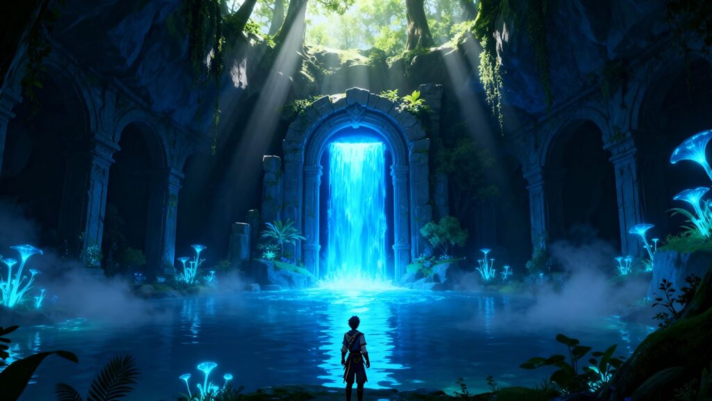 This isn’t the kind of place you rush through. You drift. You read the ruins instead of looting them. Every statue, every broken arch feels like a story you’re interrupting. The light bends through the water in silver sheets that make everything shimmer like a memory you almost forgot. Players call it haunting, and they’re right. It’s not majestic like Liyue or loud like Natlan. It’s something deeper. It’s the beauty of time itself.